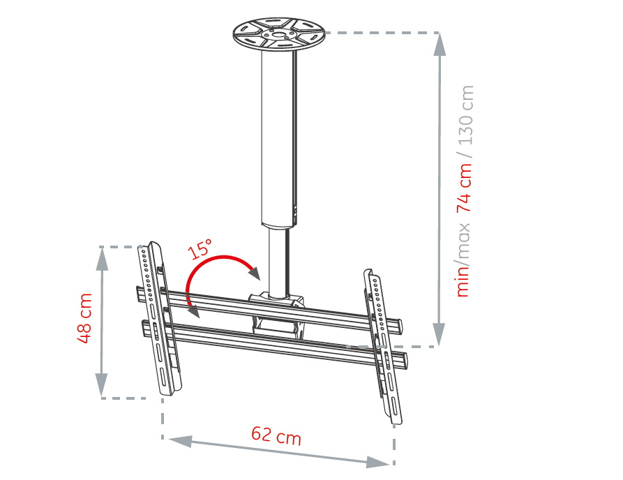 Ceiling TV mount for 32"-65" screens, 50 kg weight capacity