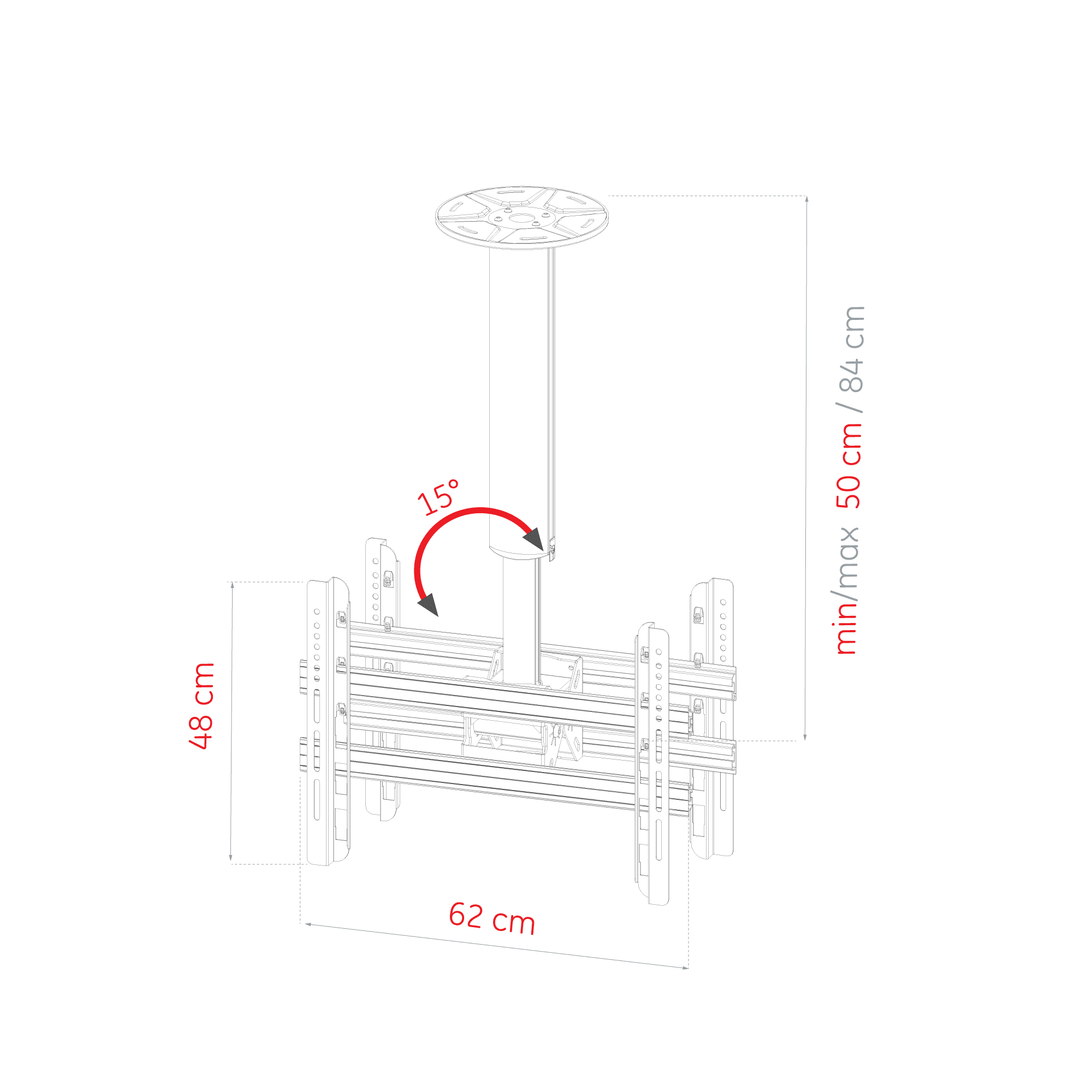 Ceiling TV mount for 32"-65" screens, 50 kg weight capacity