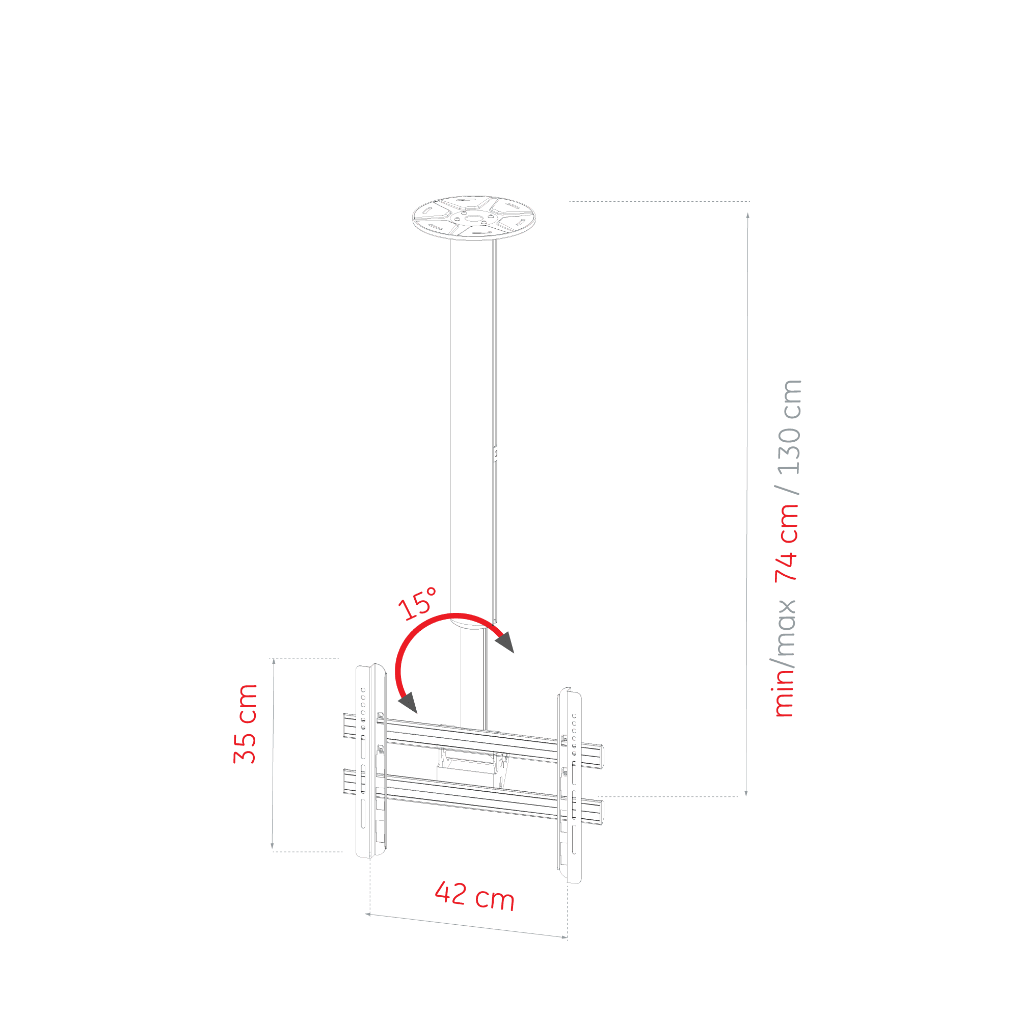 Ceiling TV mount for 32"-65" screens, 50 kg weight capacity
